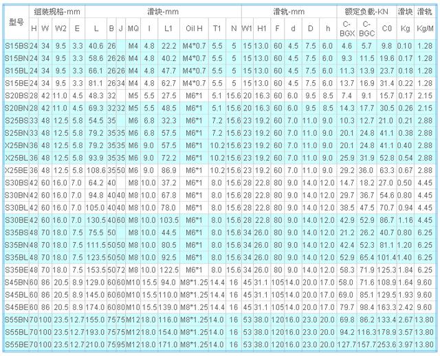 一種設(shè)備往往跟人的名字一樣,有多種稱呼。直線導(dǎo)軌也一樣!直線導(dǎo)軌又稱線軌、滑軌、線性導(dǎo)軌、線性滑軌,用于直線往復(fù)運動場合,且可以承擔一定的扭矩,可在高負載的情況下實現(xiàn)高精度的直線運動。在大陸稱直線導(dǎo)軌,臺灣一般稱線性導(dǎo)軌,線性滑軌。下圖為銳健直線導(dǎo)軌的規(guī)格負載等等的詳細參數(shù)!