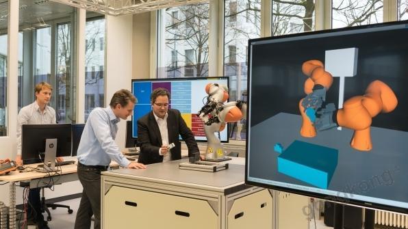 西門子——西門子中央研究院近日在慕尼黑演示了雙臂機器人的一部分,借助人工智能的高度自動化,該機器人無需編程即可自主分工協(xié)作,用于產(chǎn)品制造。西門子中央研究院Kai Wurm博士表示,“我們只需告訴機器人,把某個部件安裝到導(dǎo)軌上,它就會執(zhí)行這個操作。”作為一個簡化的例子,這項任務(wù)描述了“單件定制化生產(chǎn)”的內(nèi)涵。其中涉及加工或組裝含有不同部件的多樣化產(chǎn)品。機器人從關(guān)聯(lián)的軟件模型中獲取制造產(chǎn)品的相關(guān)信息。傳統(tǒng)的機器人無法理解這種CAD/CAM(計算機輔助設(shè)計和制造)模型,但新的機器人原型可以做到。從某種意義上說,這就好像機器人能夠理解不同的語言,從而不必對其運動和工藝進(jìn)行編程。