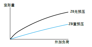 預(yù)壓力是預(yù)先給與鋼珠負(fù)荷力,亦即加大鋼珠直徑,利用鋼珠與珠道之間負(fù)向間隙給與預(yù)壓,此舉能提高直線導(dǎo)軌的剛性及消除間隙;以右圖來(lái)解釋,提高預(yù)壓力可增加直線導(dǎo)軌剛性。但小規(guī)格建議選用輕預(yù)壓以下預(yù)壓,以避免因預(yù)壓選用過(guò)重降低其使用壽命。