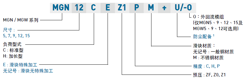 (1) 非互換性直線導(dǎo)軌產(chǎn)品型號(hào)