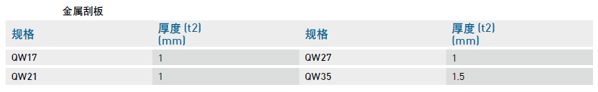 1、滑塊上面的金屬刮板,它不但可以隔離高溫鐵屑或加工火花,且還可以排除大體積雜質(zhì)。對(duì)應(yīng)的規(guī)格如下: